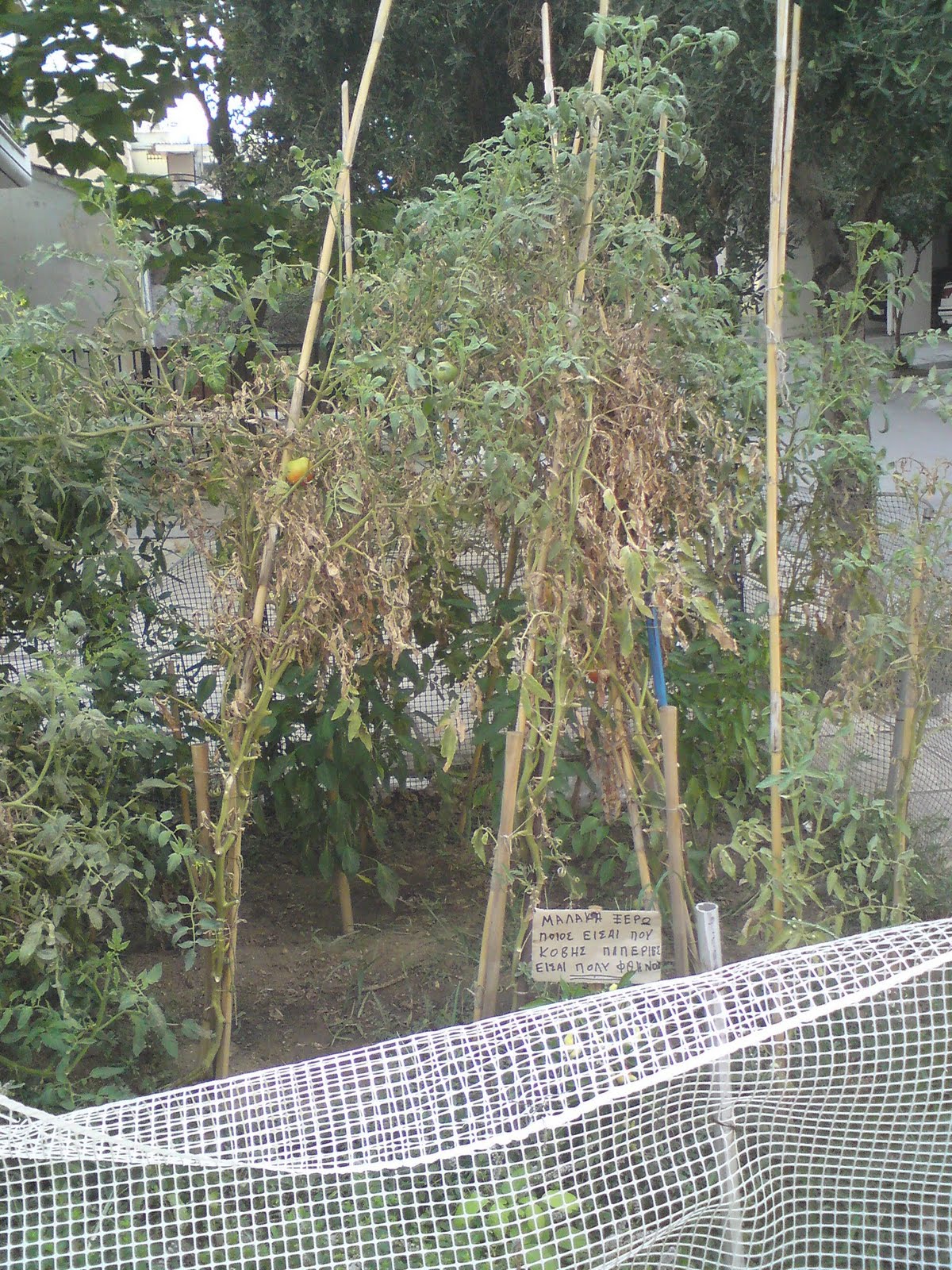 Μια μίνι φυτεία ανάμεσα σε οικοδομές, δίπλα σε παρκαρισμένα αυτοκίνητα, μπροστά στην είσοδο σε ένα δημόσιο χώρο, κάποιος συμπατριώτης μας, έκανε τον κήπο του, σε ένα τετράγωνο 2 Χ 2, καλλιεργεί ντομάτες και ….πιπεριές.